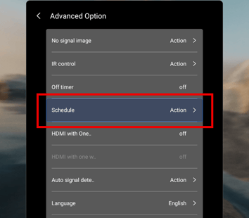 - Wählen Sie „Schedule“aus und bestätigen Sie mit der Pfeiltaste nach rechts.
